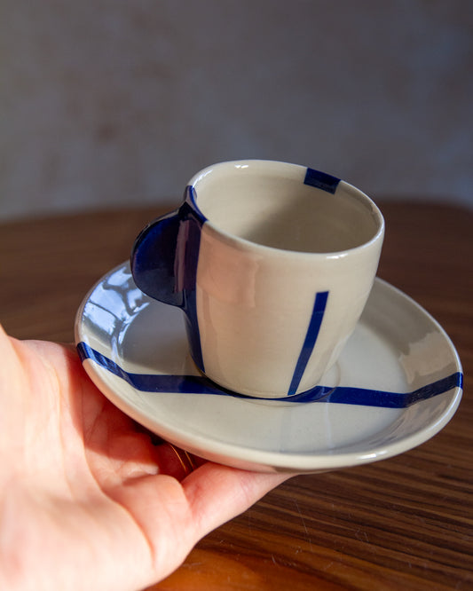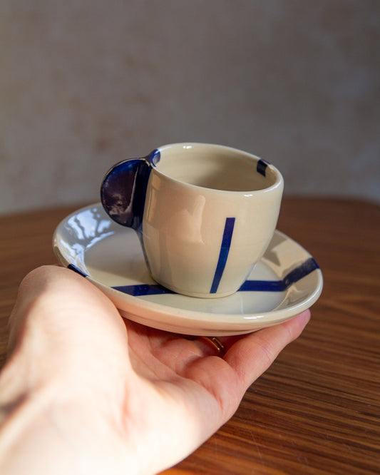 Espresso Cup & Saucer - Geometric Blue (#1)